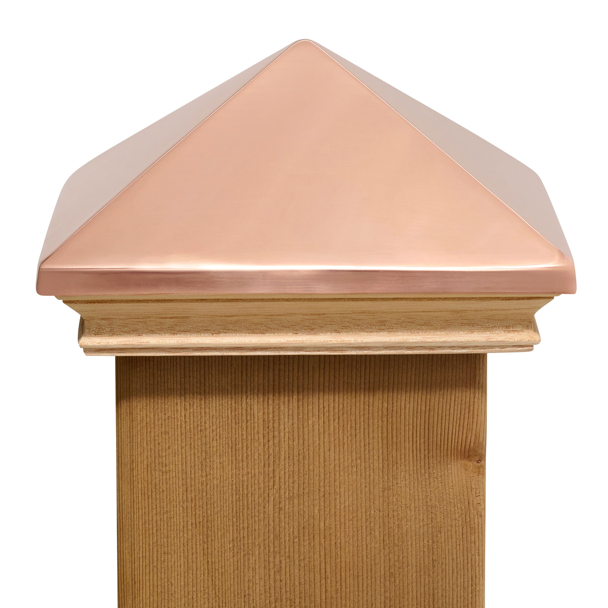 Our 20-gauge solid copper caps will patina to green, or sprayed with a lacquer to retail their sheen.